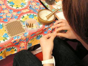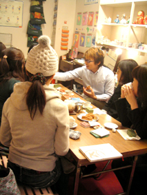 みなさん必死にコネコネしてお線香とコーン状のお香を作っていました。
