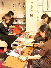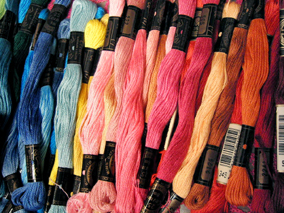 真剣に刺繍糸の色を選んでいます。