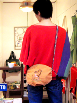 変な刺繍がかわいいショルダーバッグです。