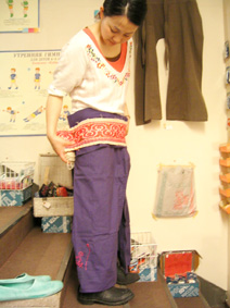 ウズベキスタンの男性用パンツです。なぜか花柄です。