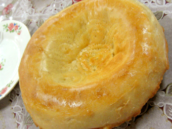 ウズベキスタンのナン 真ん中に模様が入っています。