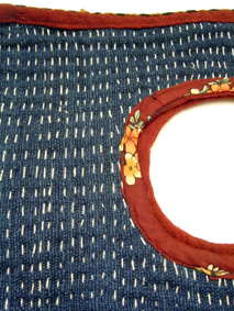 赤い糸でちくちく手縫いステッチが入っています。