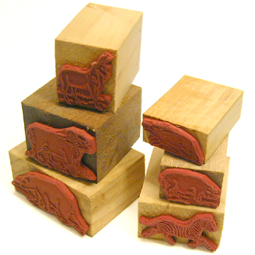 タイのはんこです。角材にゴム版がくっついてます。各500円 売り切れ