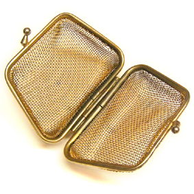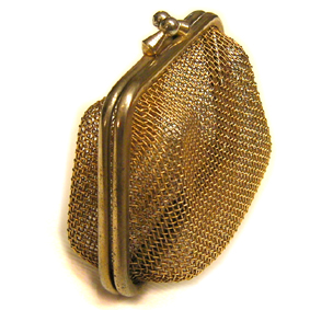 ビンテージのがま口です。渋いゴールドが素敵です。4000円 売り切れパックリ開きます。