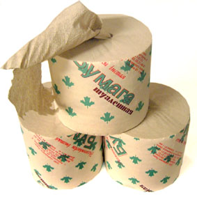 かわいい紙にくるまれたロシアのトイレットペーパーです。