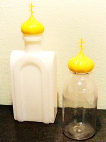キャップが教会の屋根型になっているプラスチックボトルです。大 幅 約6cm 高さ 約17cm 奥行 約4cm 1800円(中蓋あり) 売り切れ小 直径 約4.5cm 高さ 約13cm 1200円(中蓋なし) 売り切れ