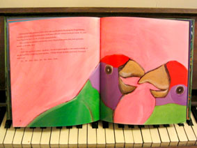 仲間の群れとはぐれて独りぼっちになってしまったオウムの冒険が描かれています。感動的な色使いです。