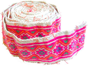 ハンドメイドの刺繍テープです。古い物なので多少ダメージがありますが、ぼそっとした感じがたまりません。