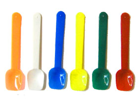 プラスチックのアイスクリームスプーンです。5本セット(各色1~2本入り) 120円