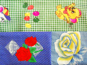 ふかふかした綿素材、裏地は薄~いビニールです。 各1200円