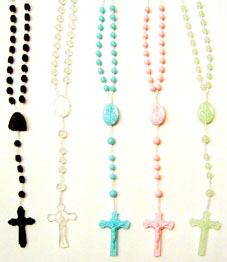 ロザリオはキリスト教徒がお祈りに使うもので、ペンダントにもなります。 一番右は暗闇で光ります。