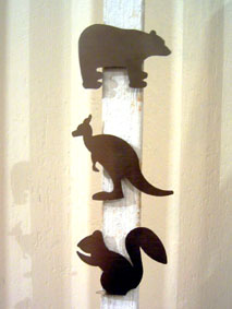 裏側にマグネットが付いているので冷蔵庫などにくっつきます。木製。 各800円
