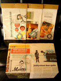 フィンランドやスウェーデンの新聞で、素敵なラッピングが楽しめるキット。 ※手前はラッピングの見本です。