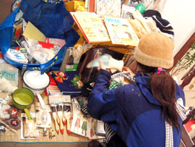 只今nico店内にてフリーマーケット「pienico市」開催中です。 お買い物中のお客さま。真剣です。