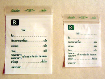 タイ語がかわいい薬用のビニール袋です。 口の部分にジップ付き。