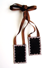端がピンクの糸でかがってあります。