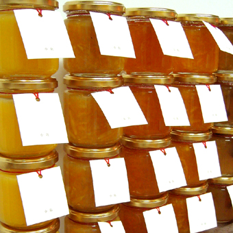 レモンカード、レモンマーマレード、はっさくマーマレード、デコポンマーマレード、りんごジャムです。