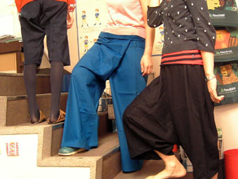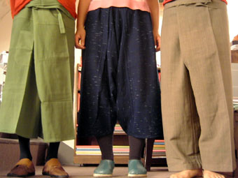 ヤオパンツ:コットン、インディゴ染め 6000円タイパンツ:コットン(全12色) 2000円 売り切れリスパンツ:ヘンプ(黒 / 茶) 8500円 売り切れ